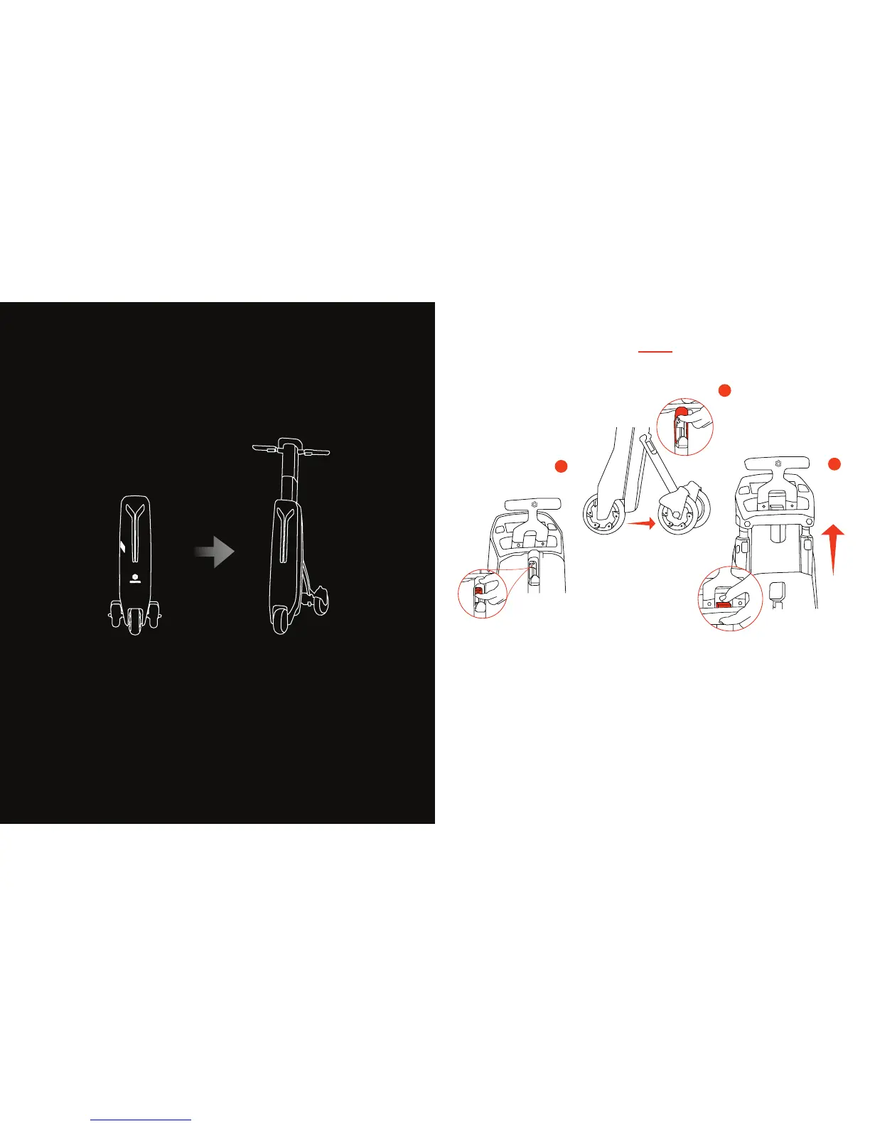 to push rear wheels backwards until they lock into place, forming