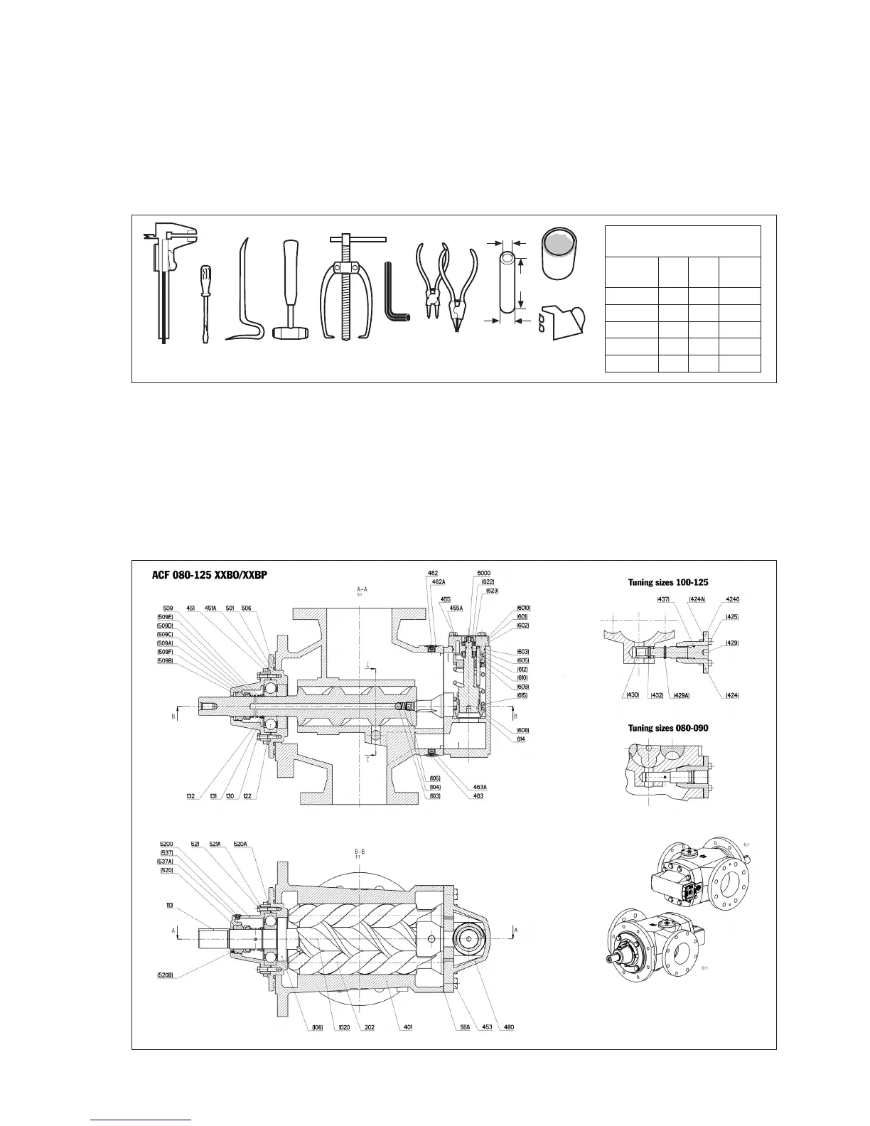 IMO ACF5 - Dismantling and Reassembling the Pump; List of Tools Necessary for Dismantling and Reassembly; Sectional View