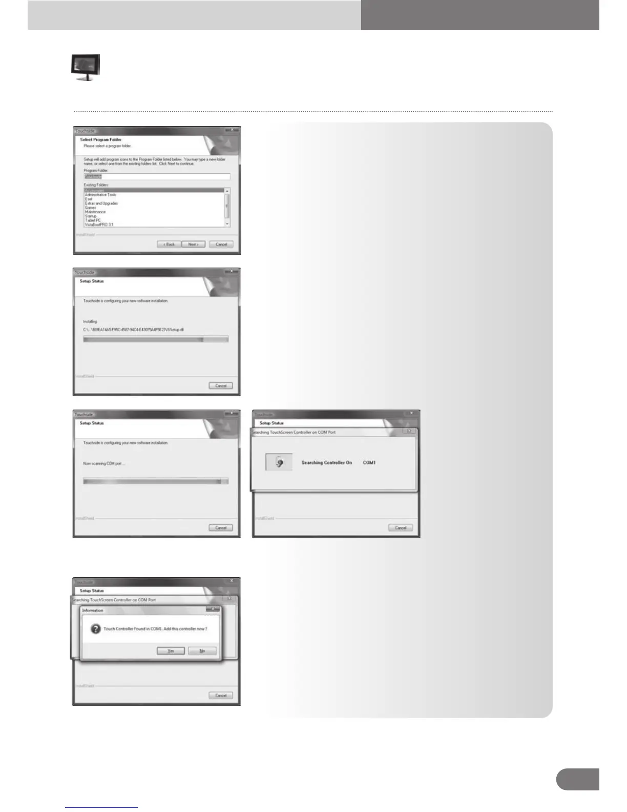 11. After files copied, the wizard begins searching Touchside devices on COM ports.