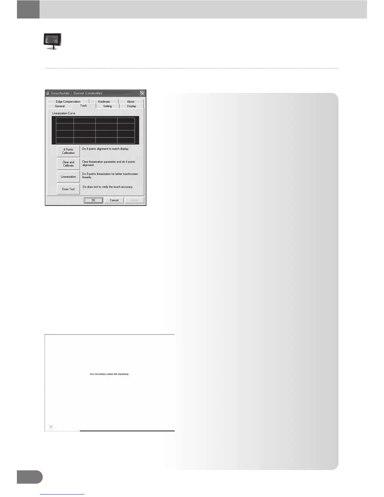 User should follows the guide to touch and hold the blinking X symbol in the calibration window