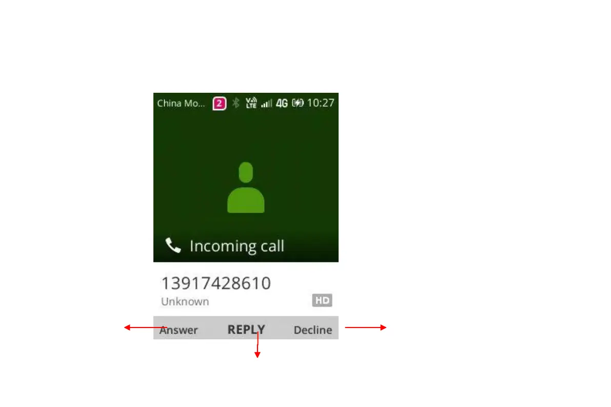 network support, the phone screen will show the name and telephone number of the caller; at this time, you can