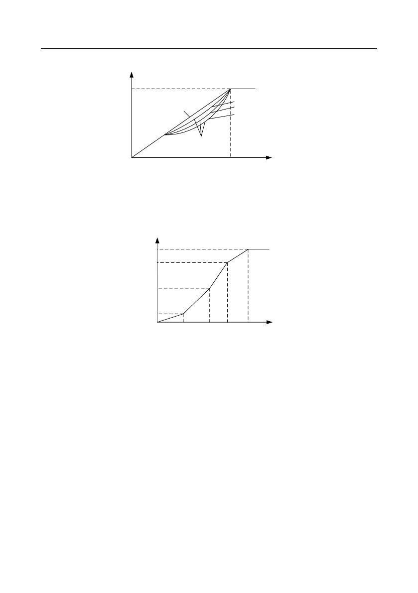 The inverter also provides multi-point V/F curve. You can alter the V/F curve outputted by inverter