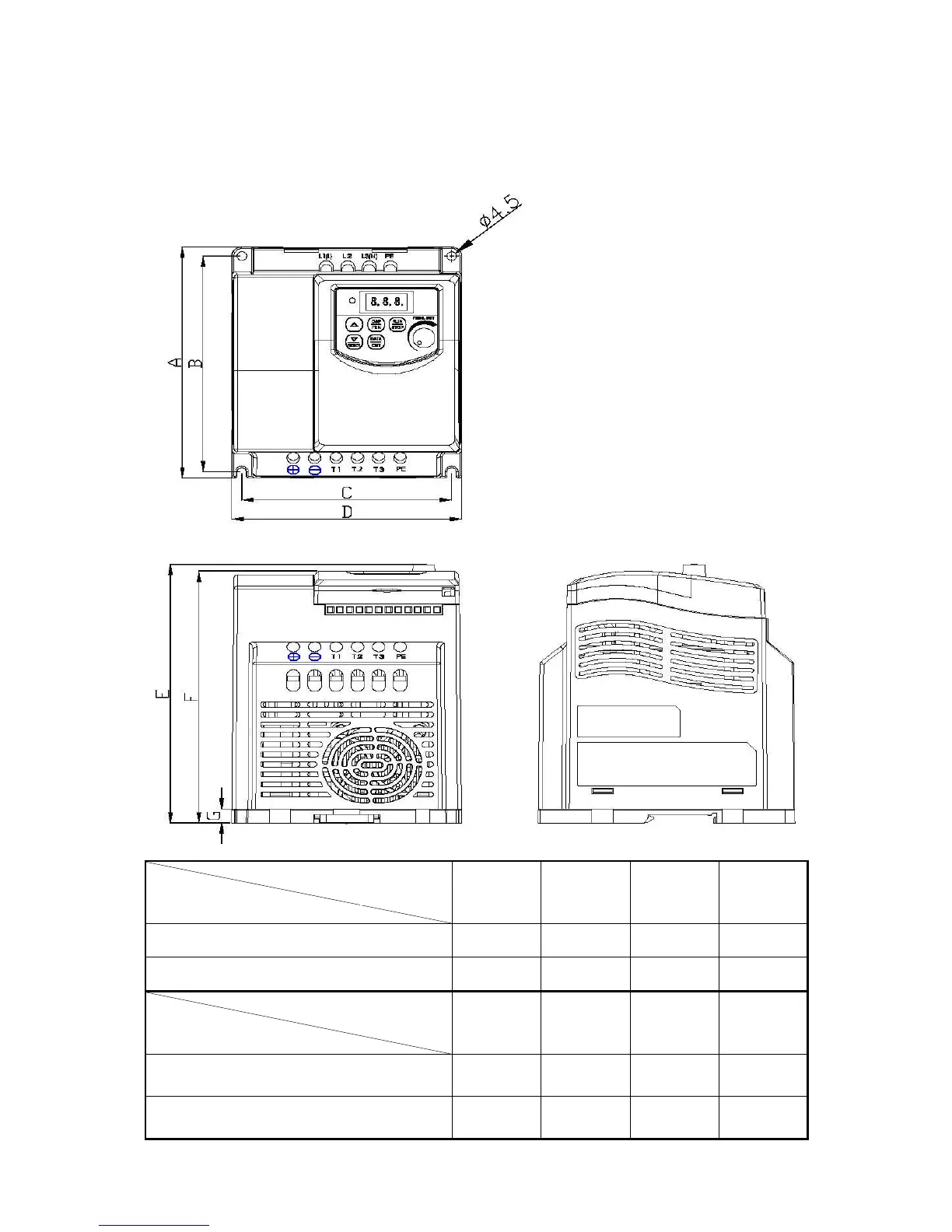 IP20 Frame 2: 1-phase 200V: EDX-150-21 ~ EDX-220-21; EDX-020-21-E ~ EDX-075-21-E