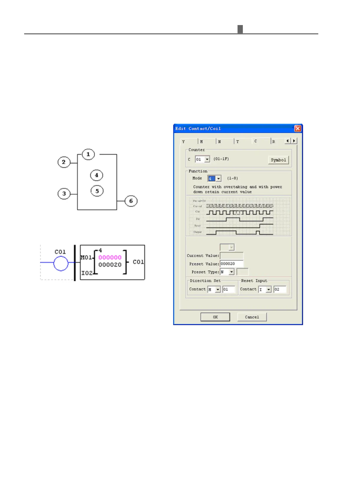 retentive and will keep its current count after power lost. Mode 4 Counter will count up to a fixed preset value and then