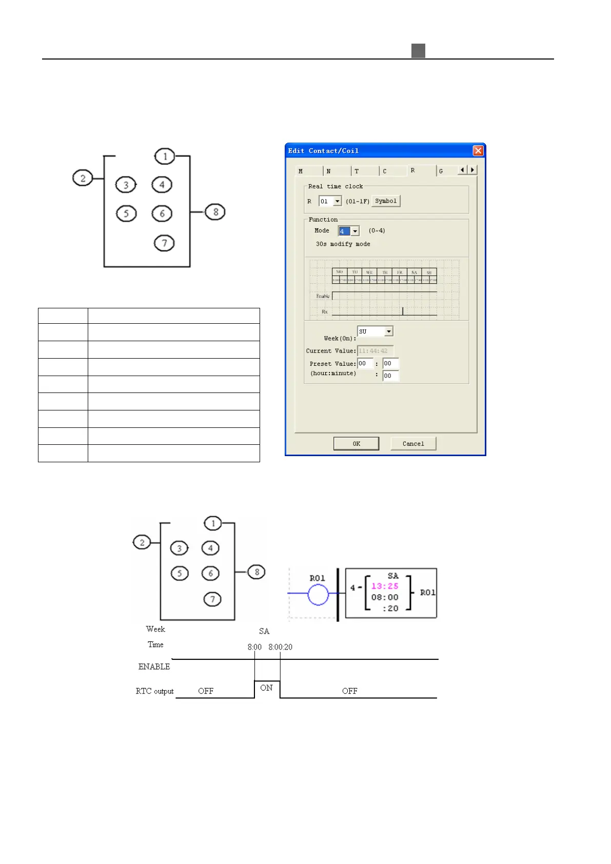 ※ The current time will return to 8:00:00 when it achieves 8:00:20 at first time, and RTC contact, R01, will turn ON,