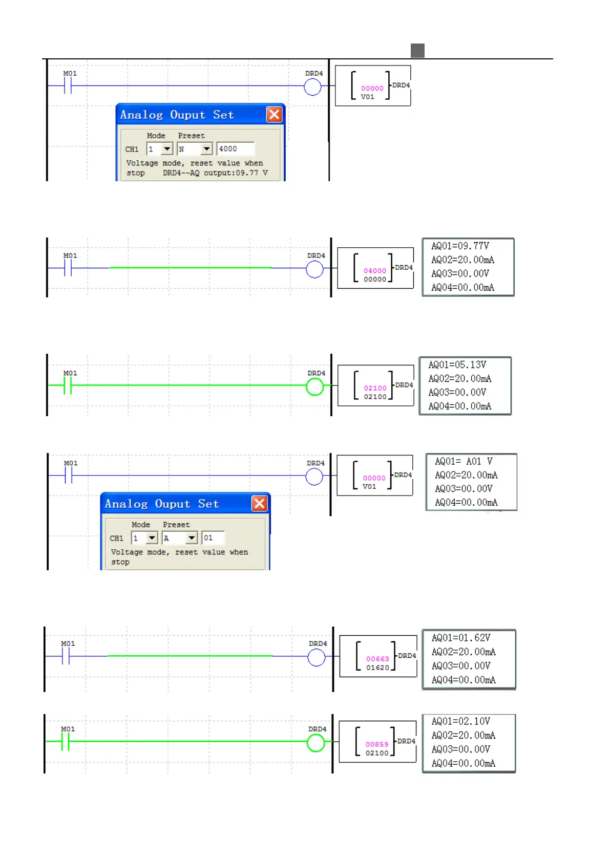 preset value of AQ01, and AQ01 outputs 9.77V.