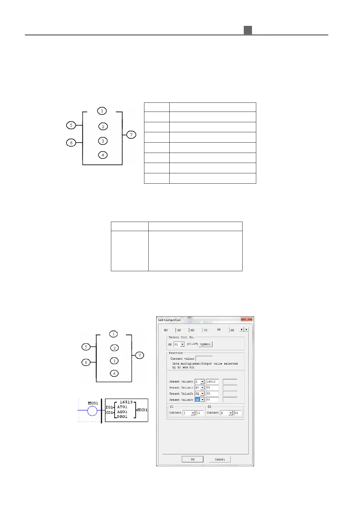 MX=AQ01; if I01 is at OFF and X01 is at ON state, the MX =AT01, and so on.
