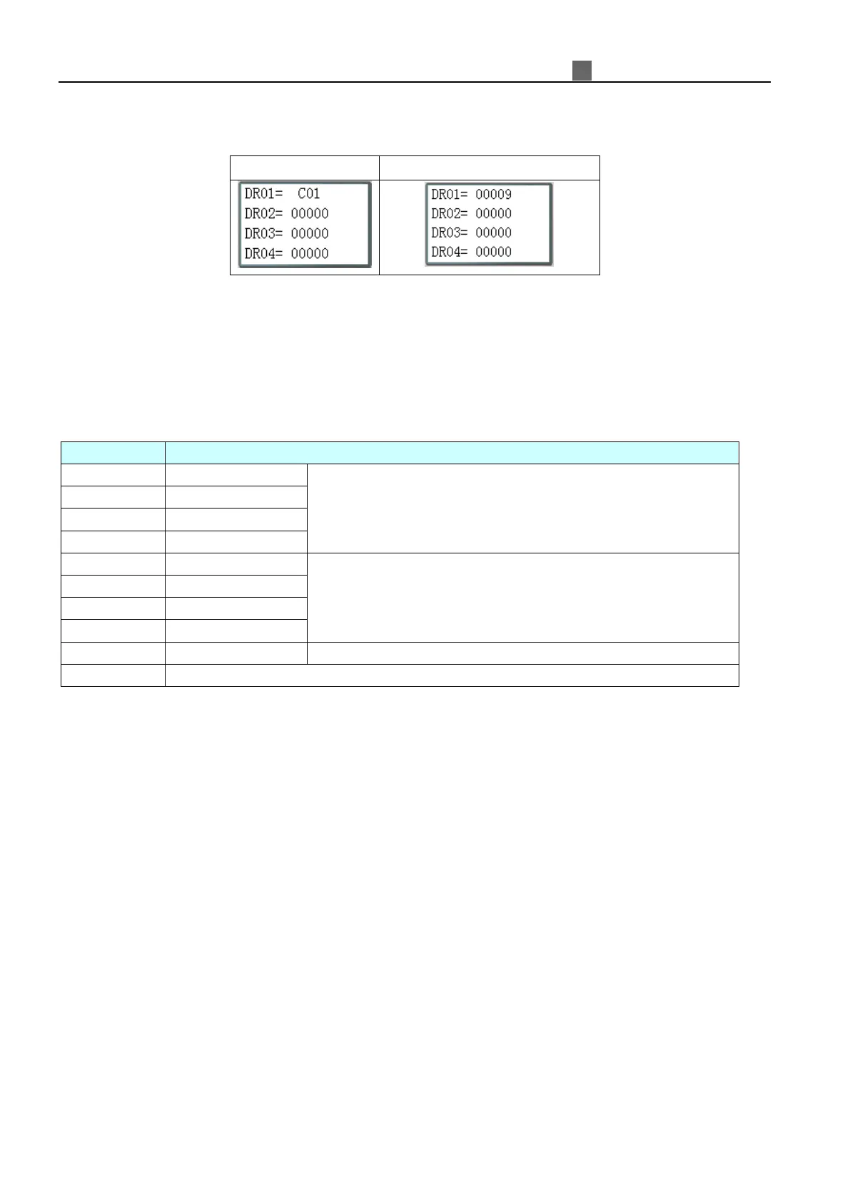 Data register screen on HMI display DR preset value in stop mode and display DR current value in run mode.