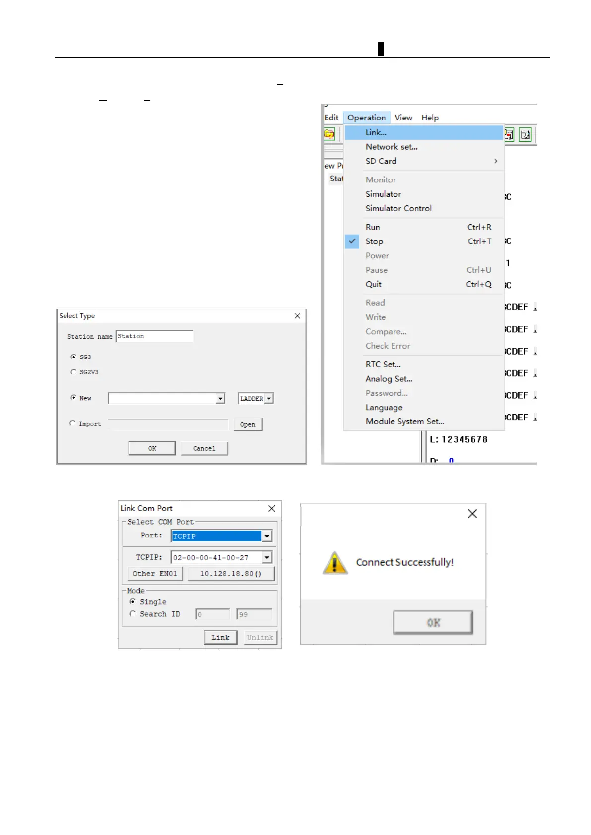 b. Select “Operation/Link Com Port…” as shown below right.