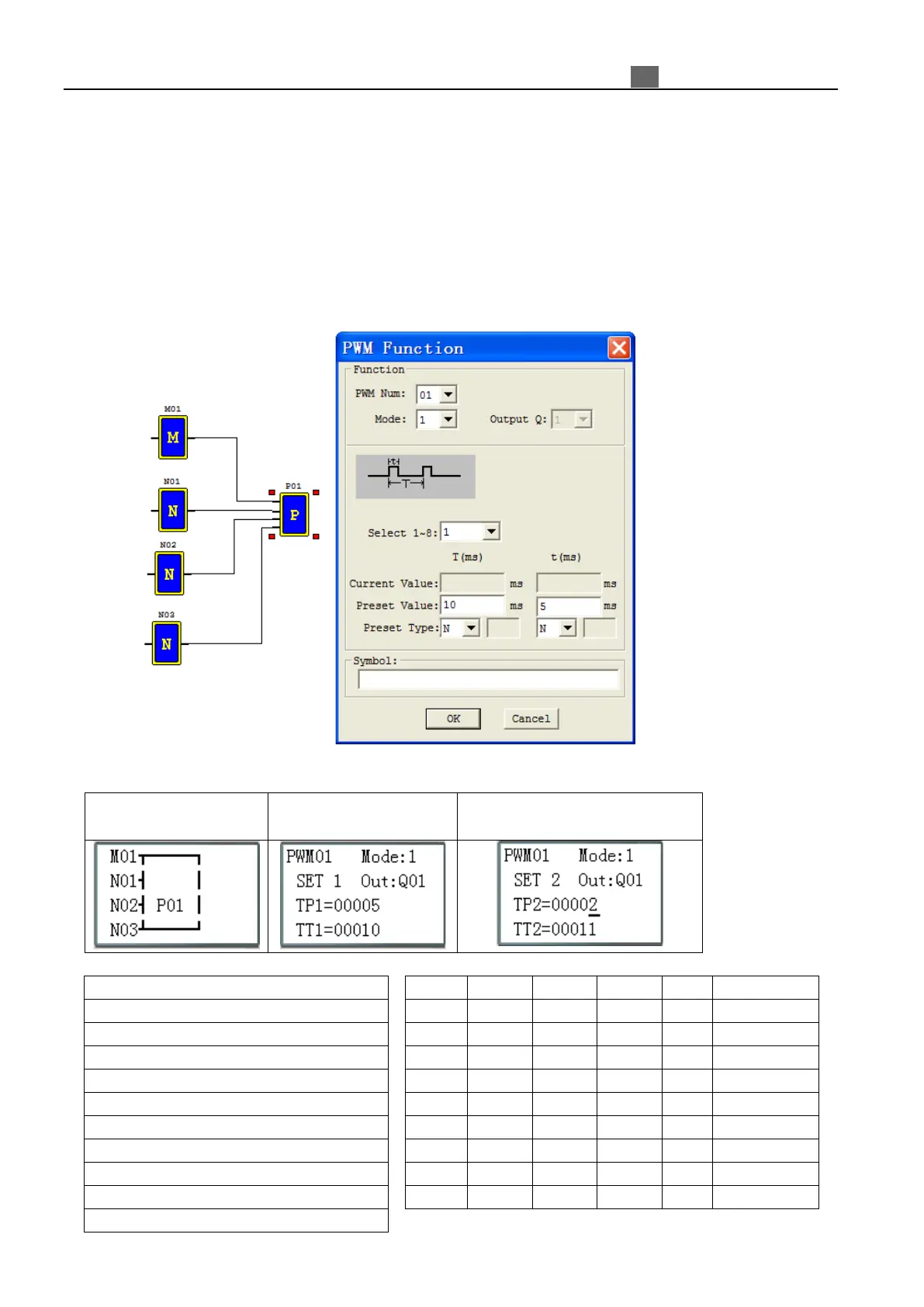 on terminal Q01 and Q02. The PWM instruction is able to output up to an 8-stage PWM waveform. It also provides a