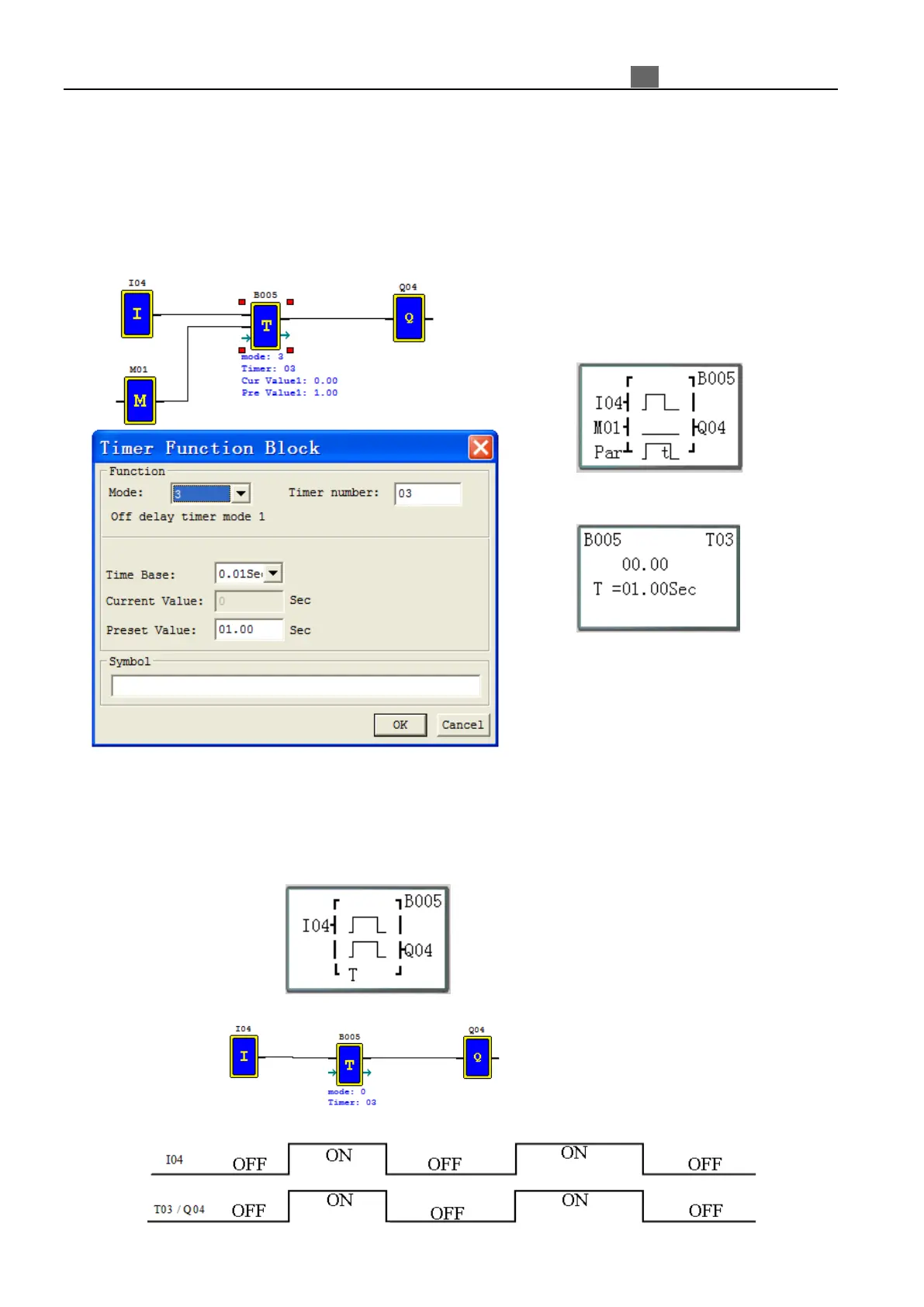 Mode 0 Timer (Internal Coil) used as internal auxiliary coils. No timer preset value and no parameter display.