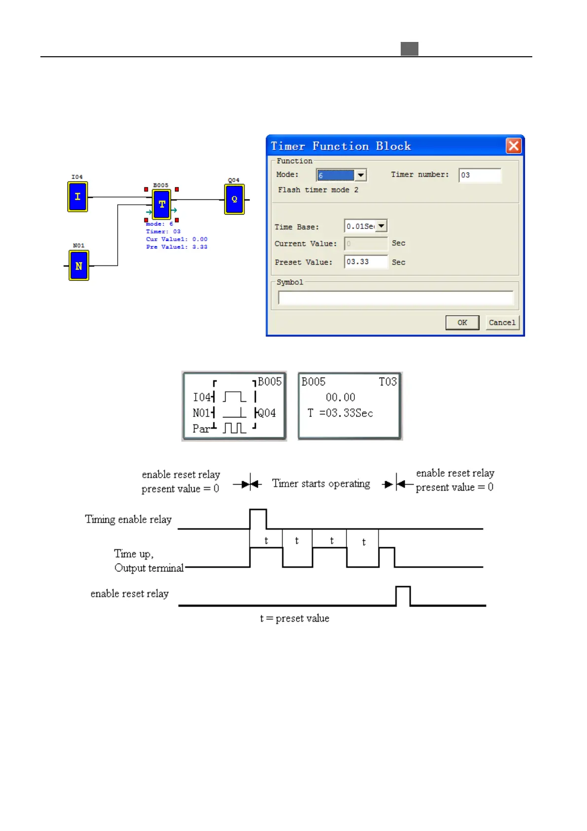 Mode 6 Timer is a Flash timer with reset that will time up to a fixed preset value and then change the state of its