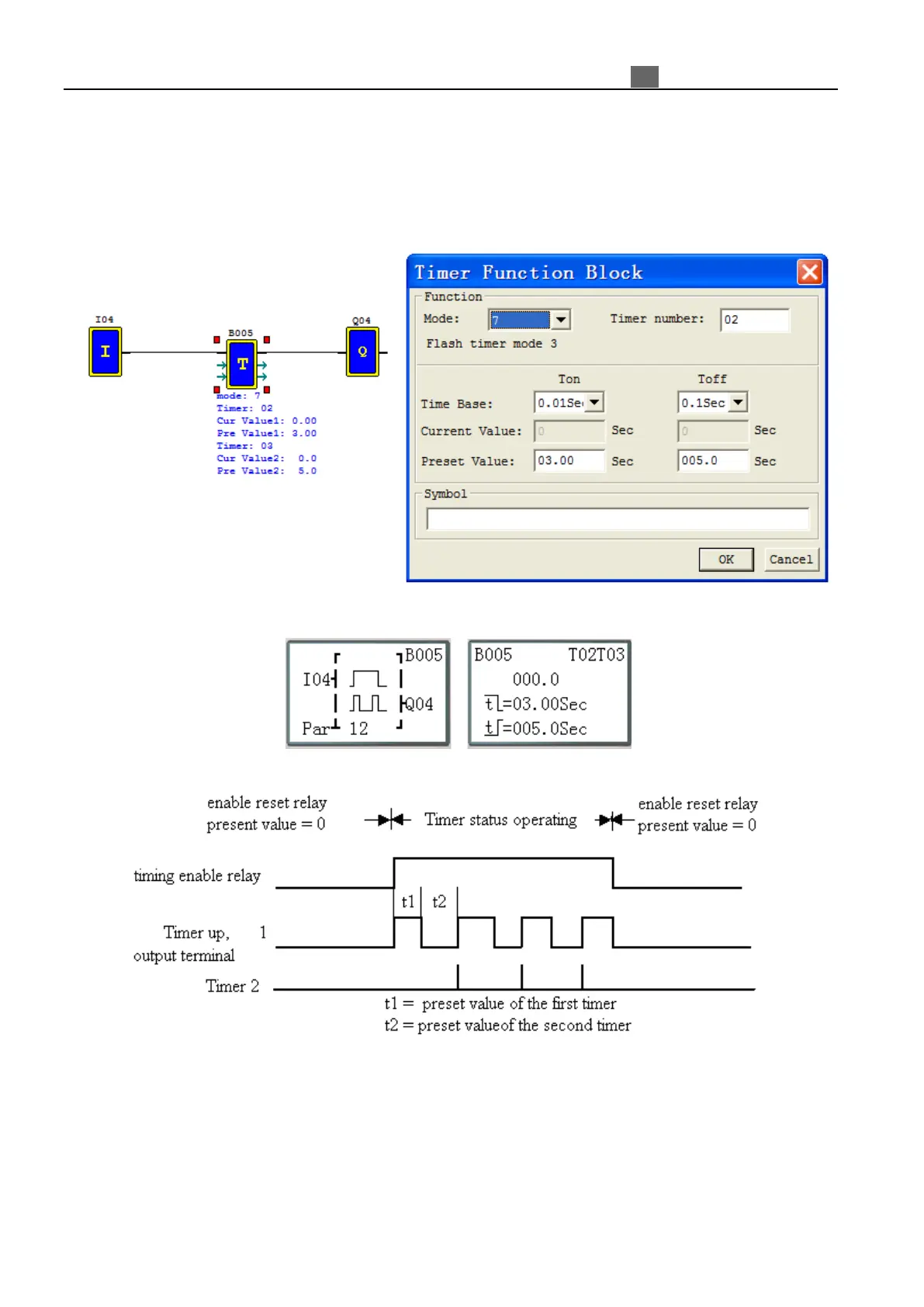 number follows the first Timer. The cascade configuration connects the timer status bit of first timer to enable the