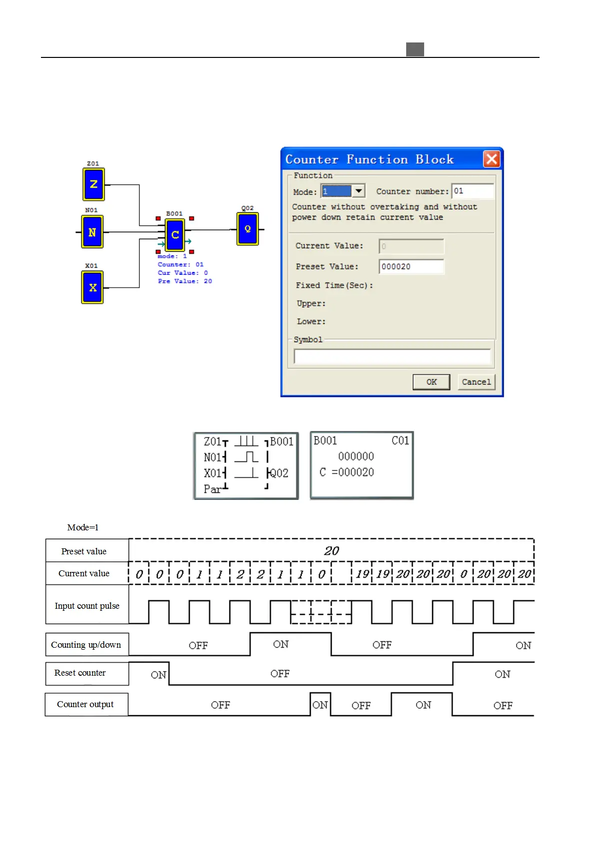 (2) Counter Mode 1 (Fixed Count, Non-Retentive)