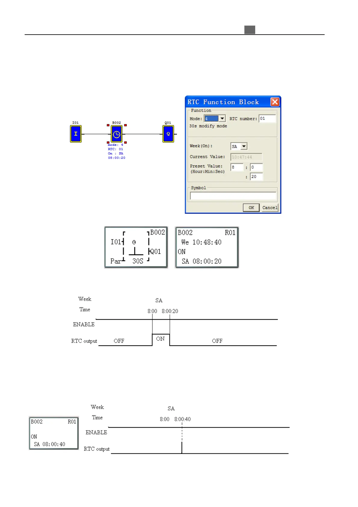 be ON. RTC status bit B002 (R01) will be OFF when the present time achieves 8:00:20 at second time. Then