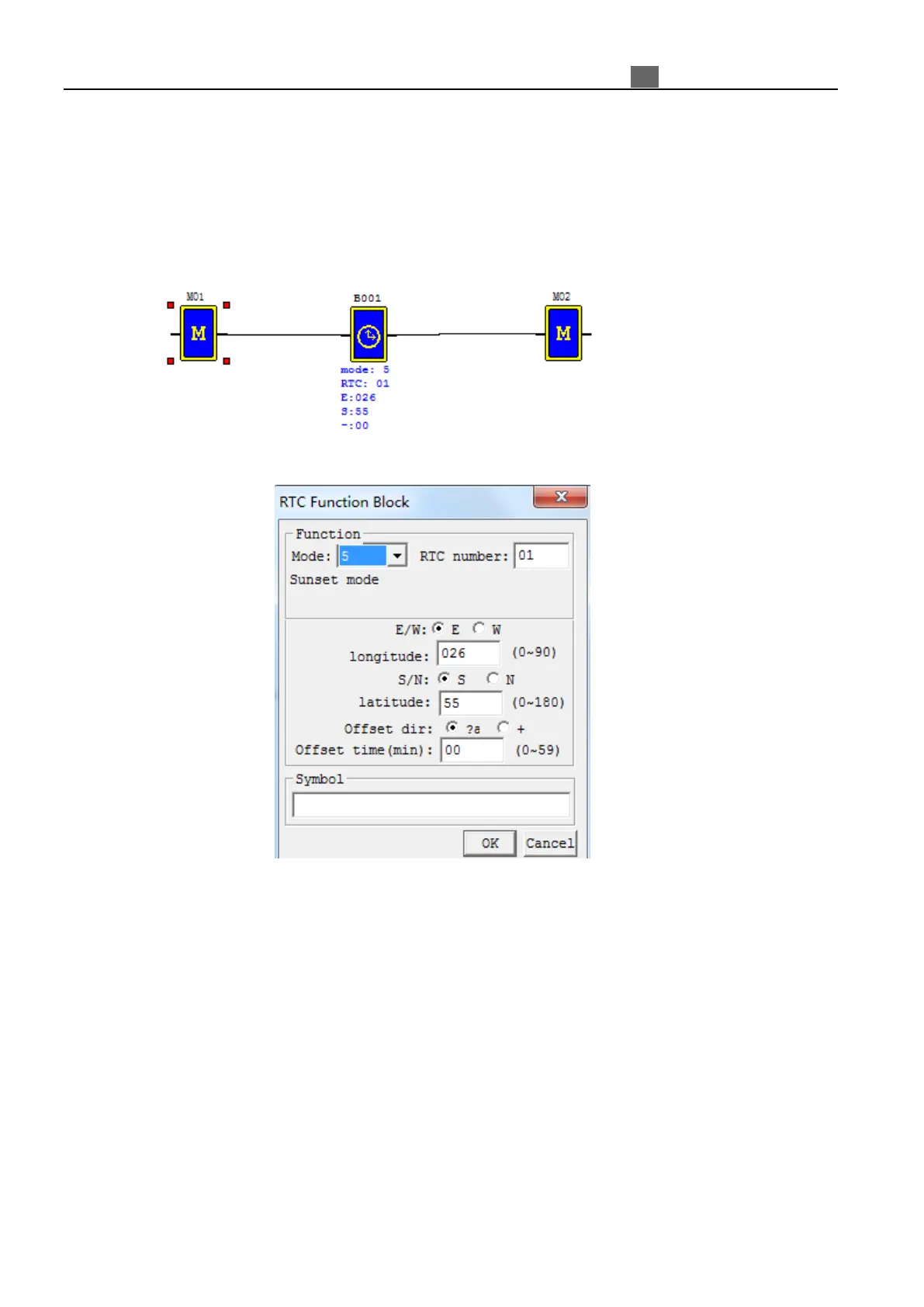 ※ Calculate sunrise and sunset time according to the current value of RTC. Set R01 ON after sunrise and before