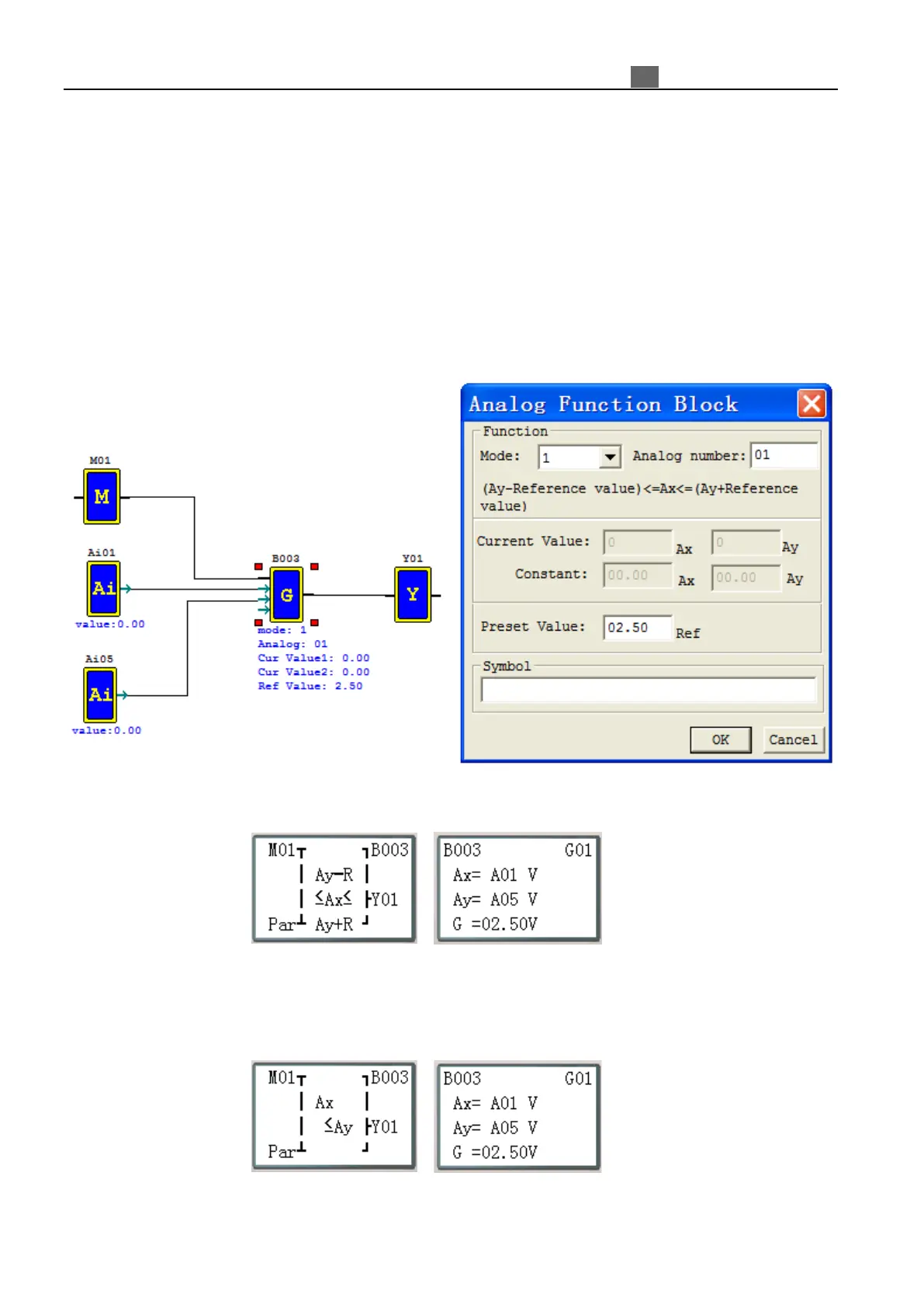 Analog comparator mode 1~7, setting three parameters, analog input Ax, analog input Ay and reference value G.