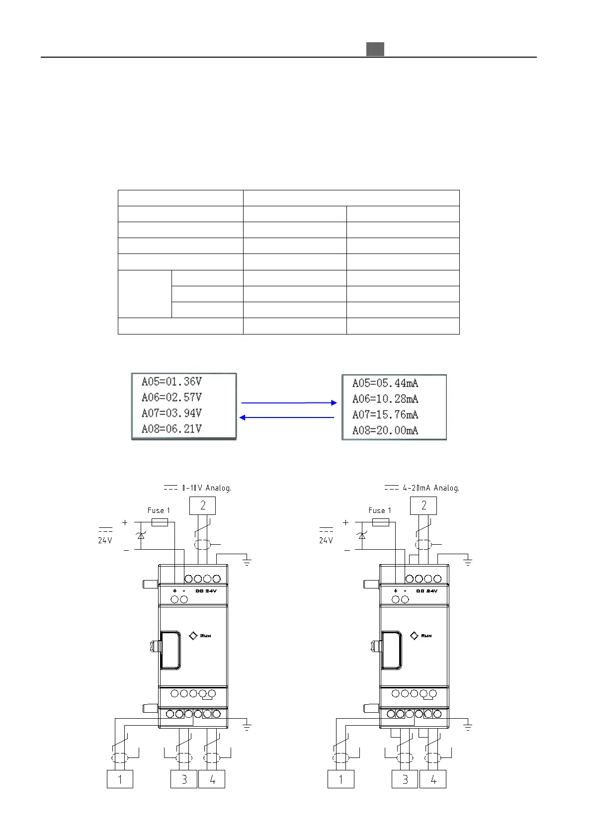 DRE4~DRE7. It can accept either 0~10V or 0~20mA signal, the range of the measured value is different which