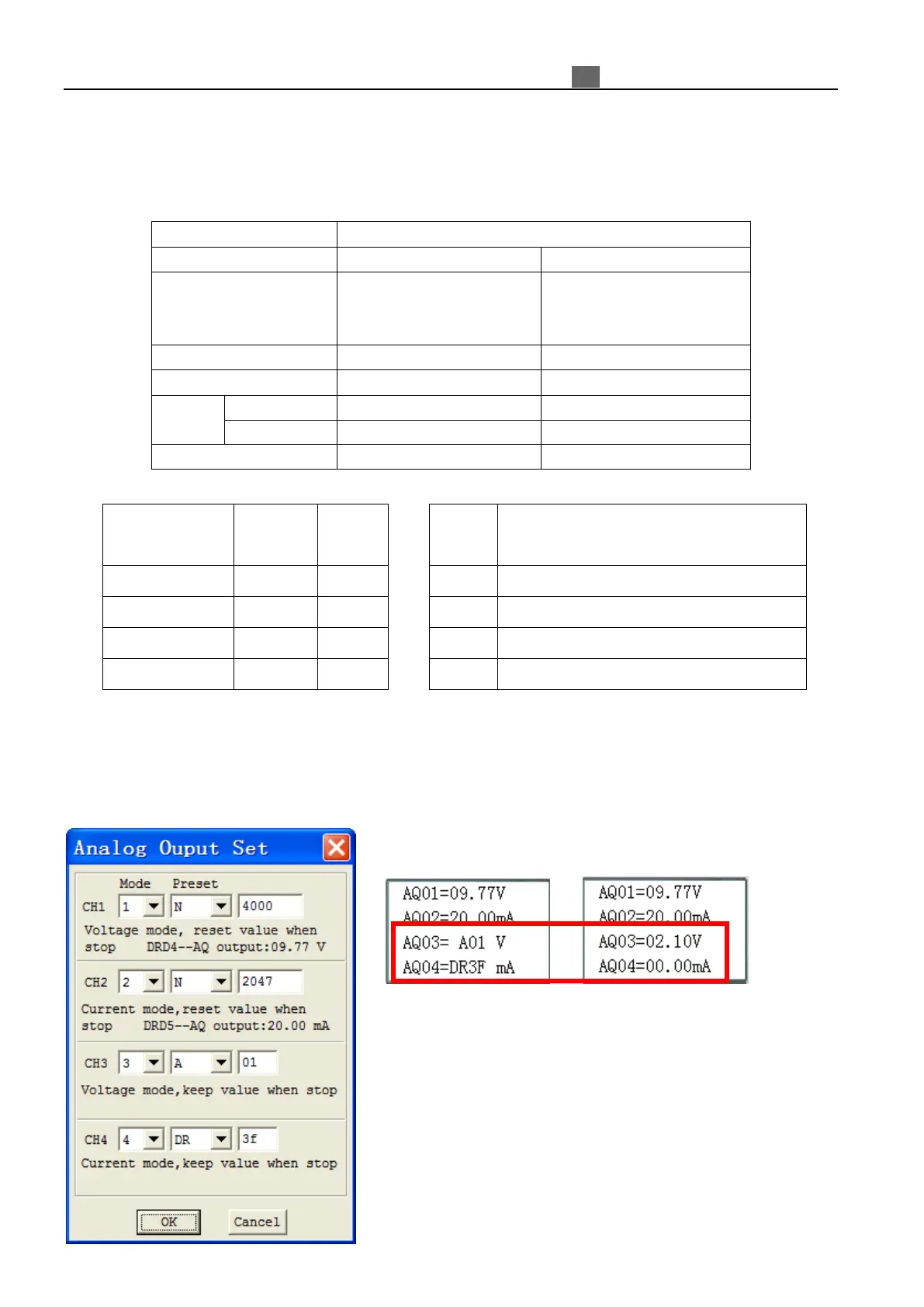 Channel 3: AQ03 DRD6 DRD2 3 2: voltage mode and keep value when stop;