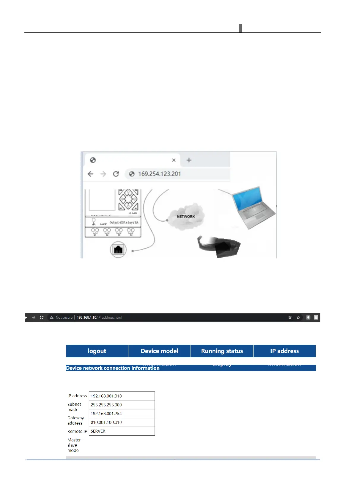 through PC or mobile devices in Ethernet. The display of the equipment status only supports English and Numeric