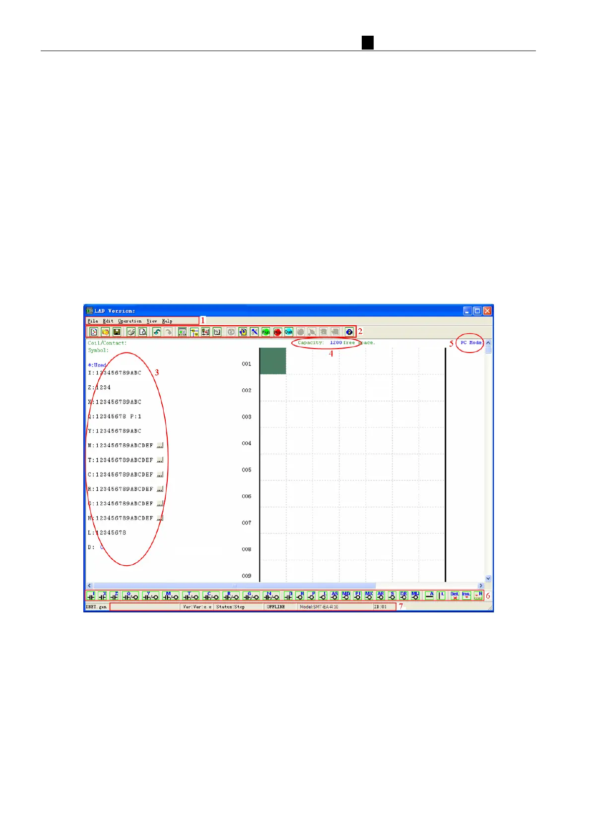 6. Ladder Toolbar – Icons for selecting and entering all available Ladder Logic instructions.
