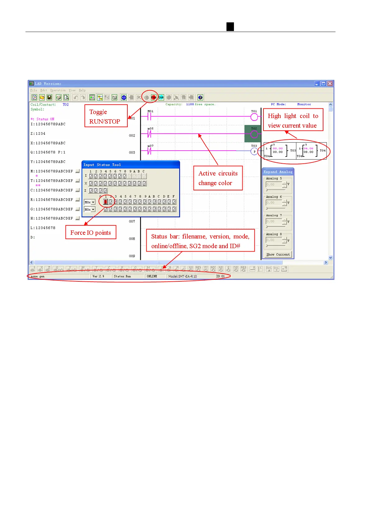 Additional online functions include, I/O forcing, and Mode changes (Run/Stop/Quit).