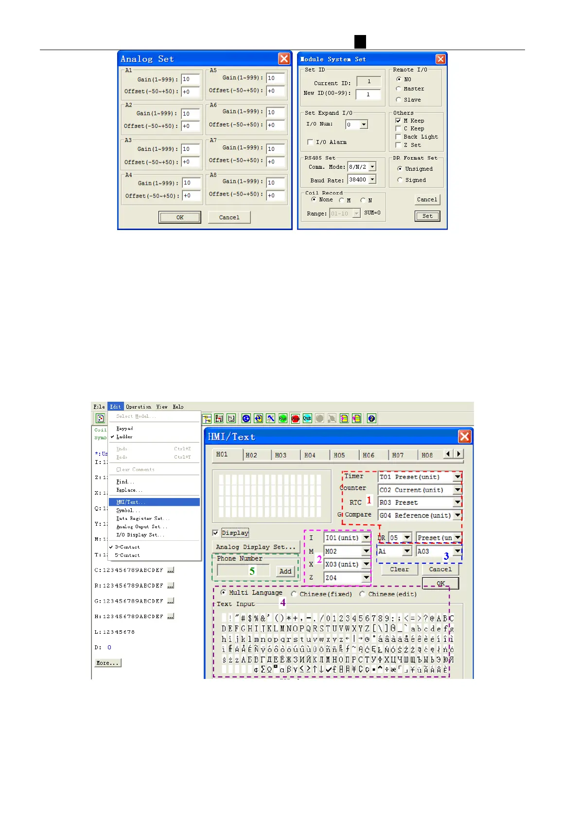 HMI/TEXT editing and parameter setting interface, as shown below.