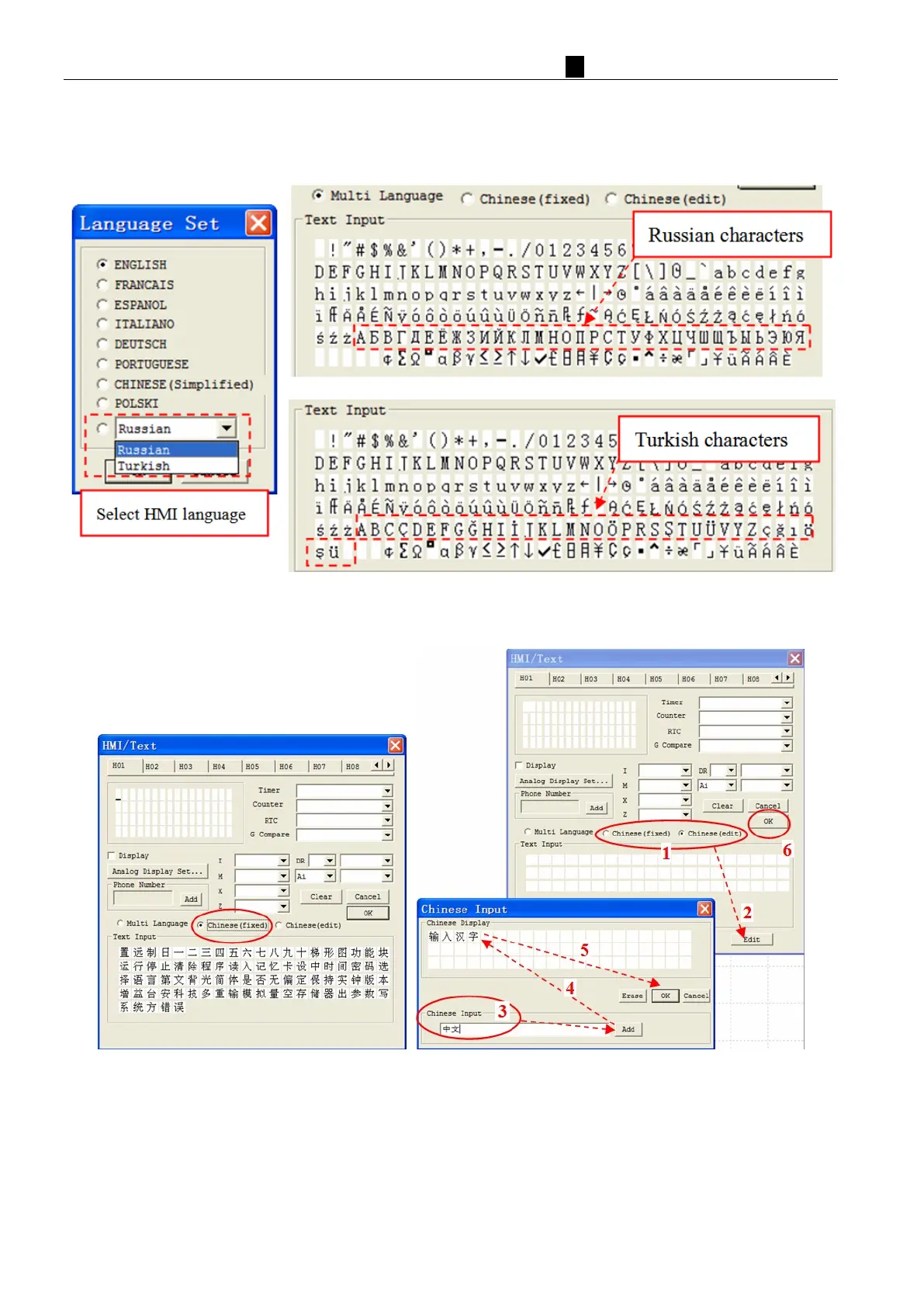 Built-in Chinese characters, which read as following left of the HMI/TEXT editor window;