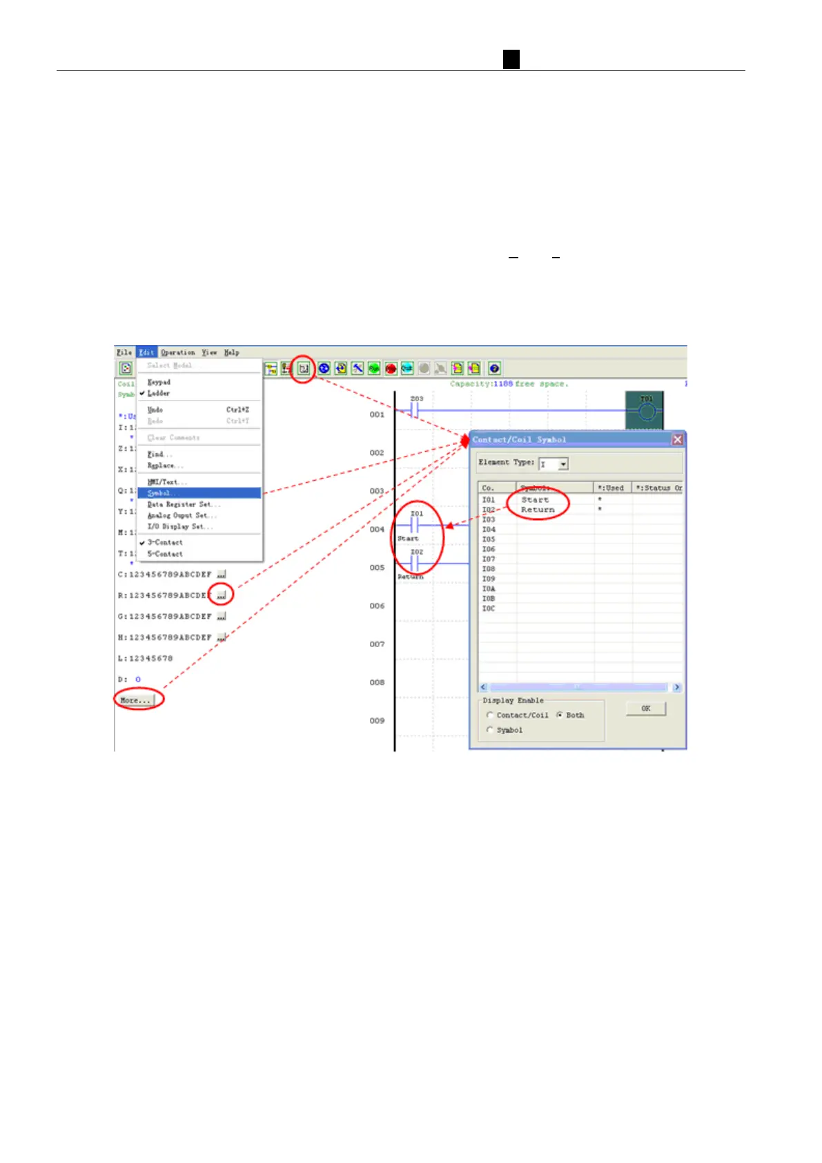 The Symbol editing environment allows for documenting all the contact and coil memory types and selecting display