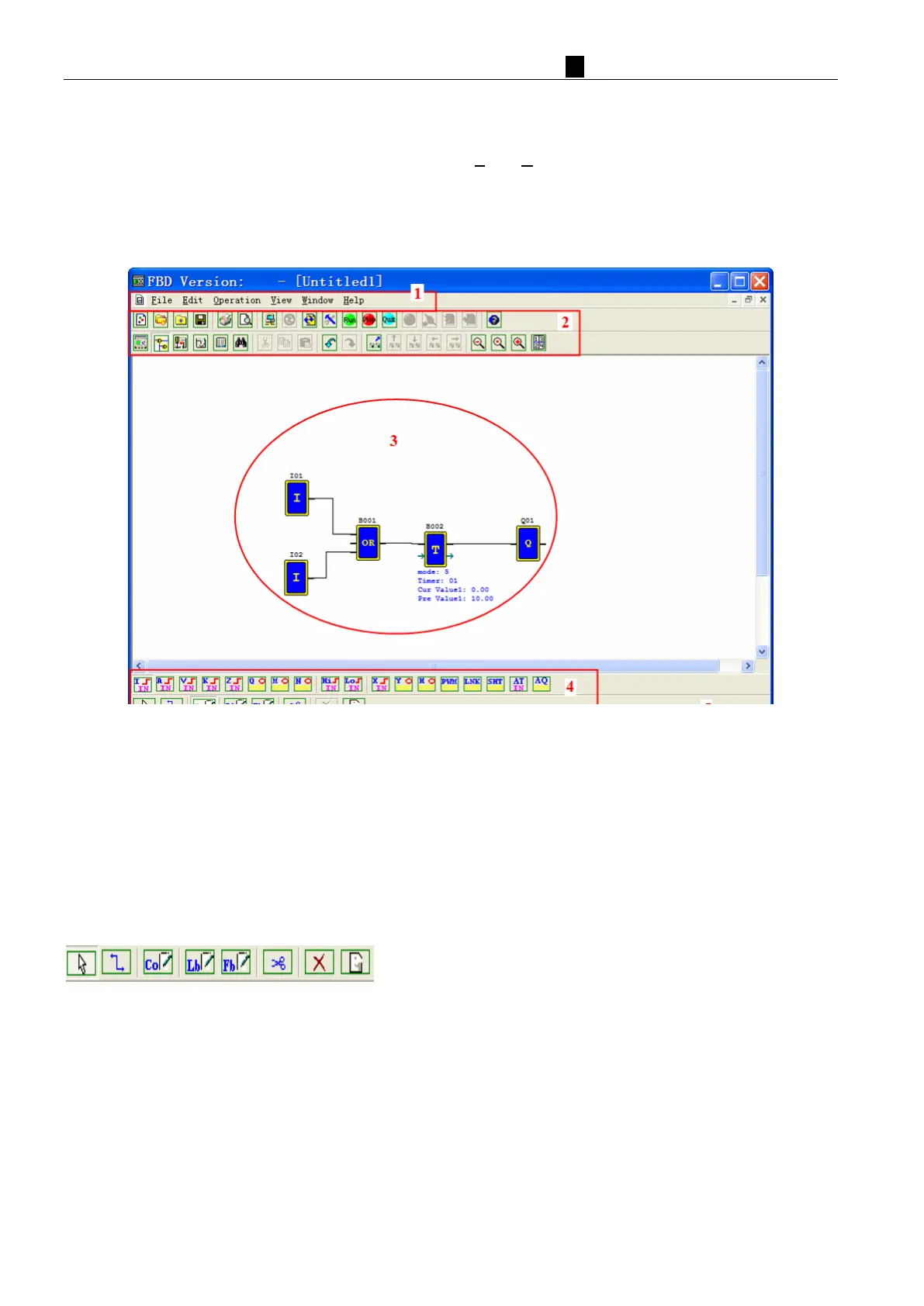 4. FBD tools bar: Each option can be chosen to edit the coil and function block instructions.