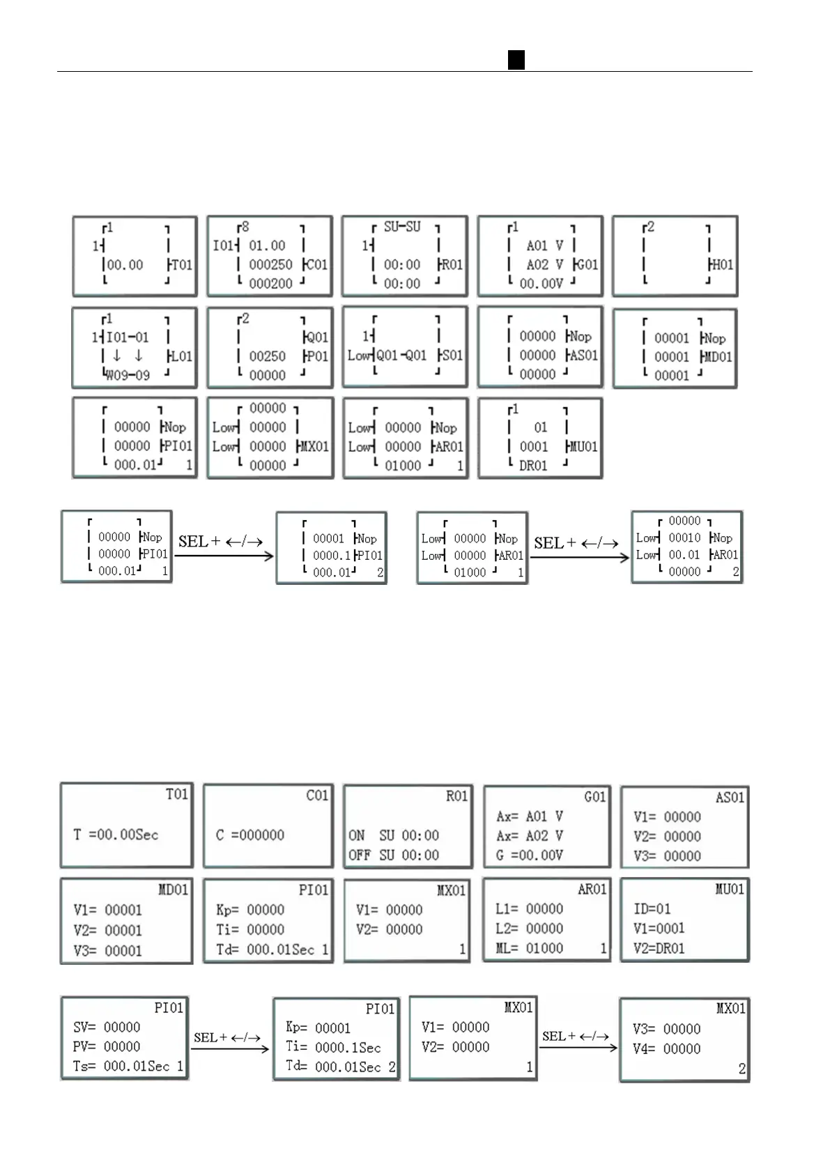 r FBD mode, Press “SEL” key, Block which used in program displays in sequence.