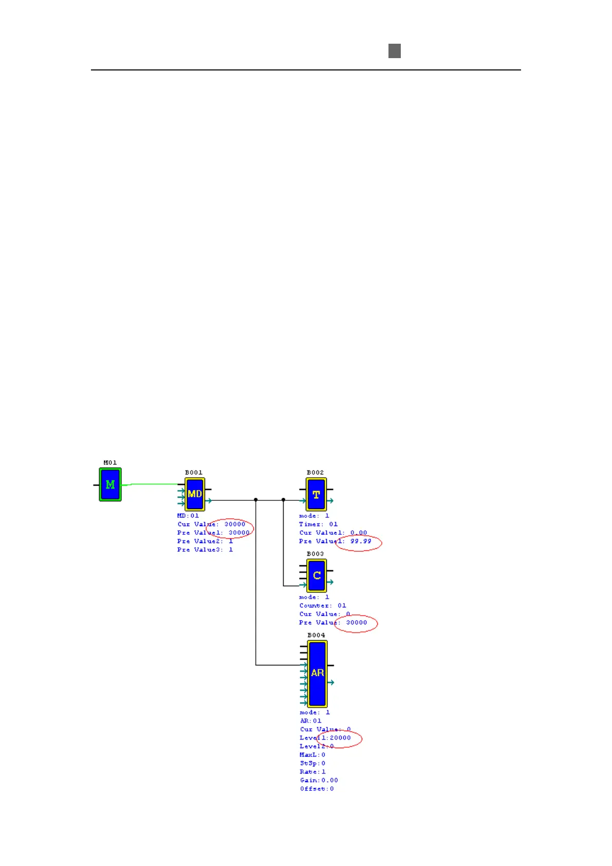 When B006(MD01)=30000, MD01’s value 30000 is passed to other function block as preset
