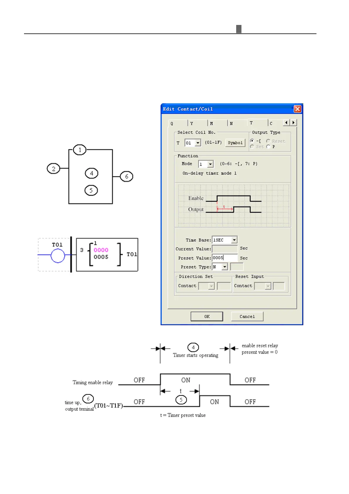 1 Timer (ON-Delay) will time up to a fixed value and stop timing when the current time is equal to the