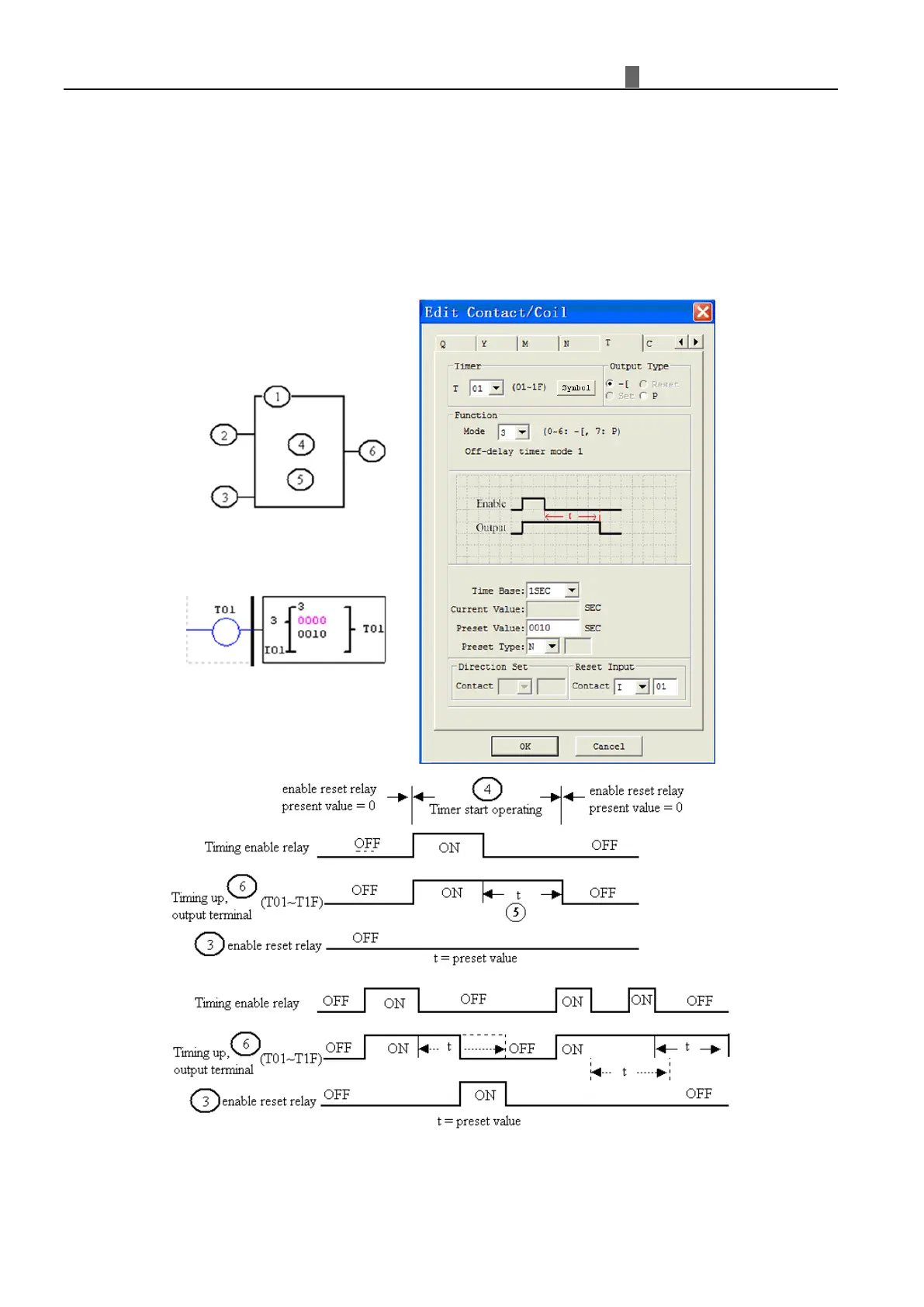 disabled. In the example below, the timer reset input is Input I01.Timer status bit T01 will be ON immediately when