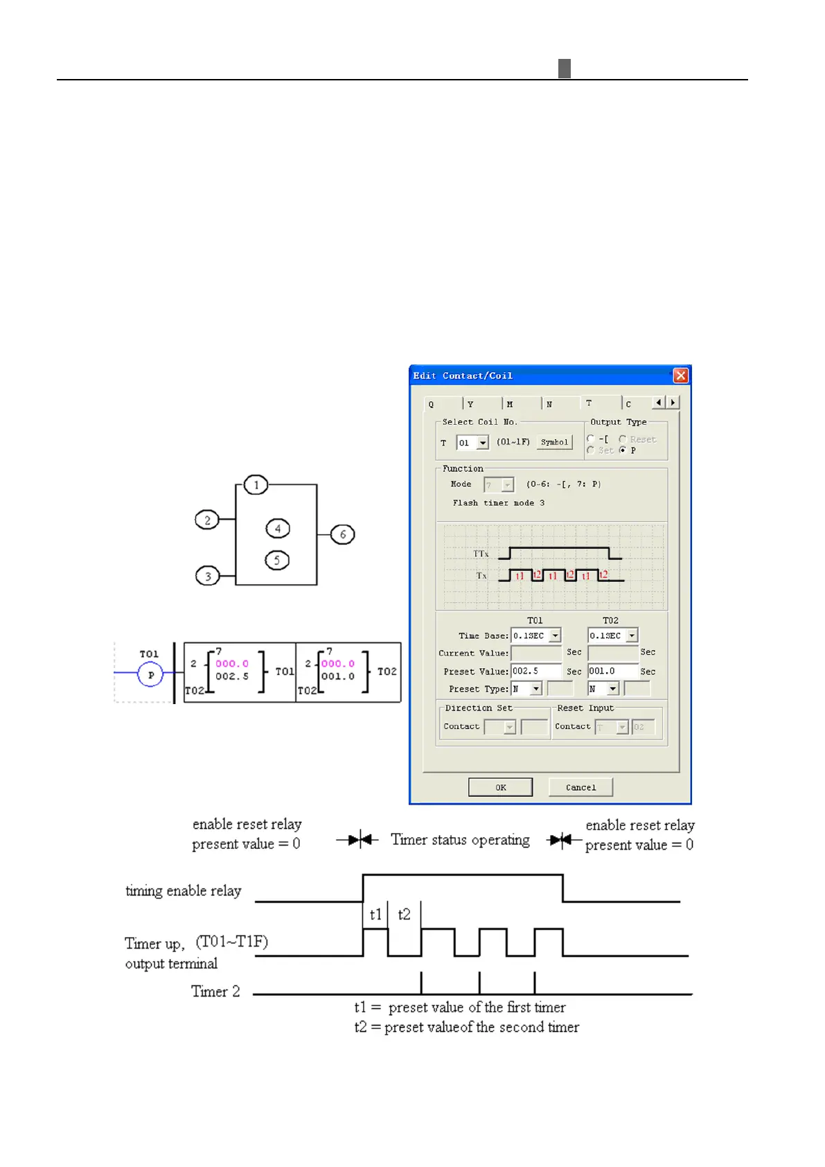 Timer number follows the first Timer. The cascade configuration connects the timer status bit of first timer to enable
