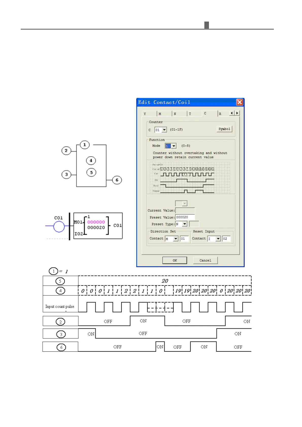 value of 20. Counter status bit C01 will be ON when the current value is 20.
