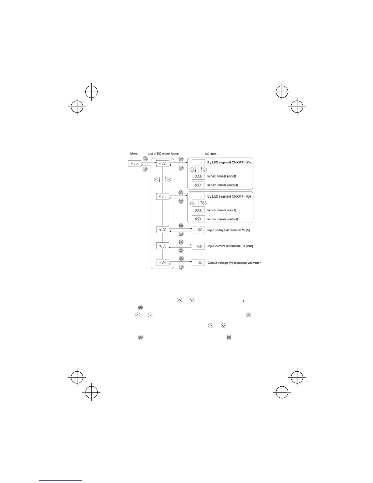 (1) With the menu displayed, use the and keys to select "I/O check"(4. _o).