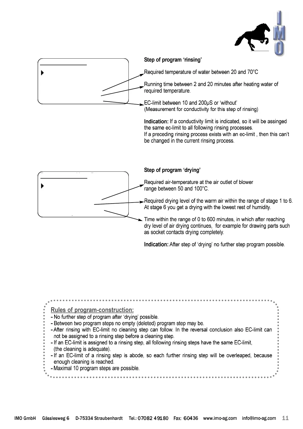 IMO Oko 1000 - Program Step Details and Rules; Program Step Details: Rinsing and Drying