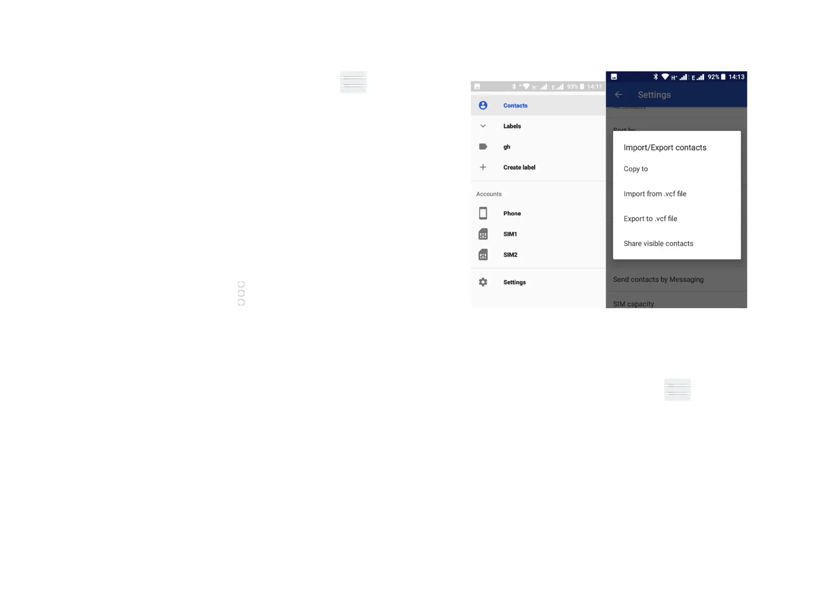 contacts from/to your SIM card, Phone, Accounts, Internal