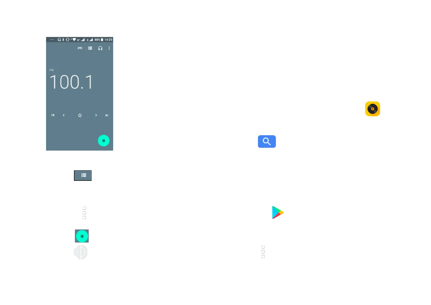 FM channels. You can use the buttons in the lower of the screen