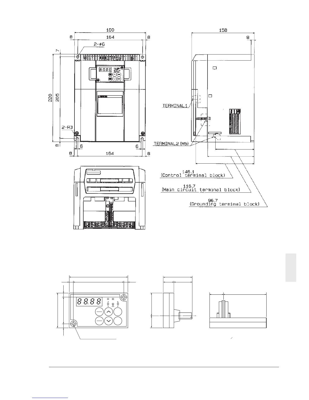IMO VXSM550-3 - External Dimensions: VXSM550-3, VXSM750-3, and Keypad