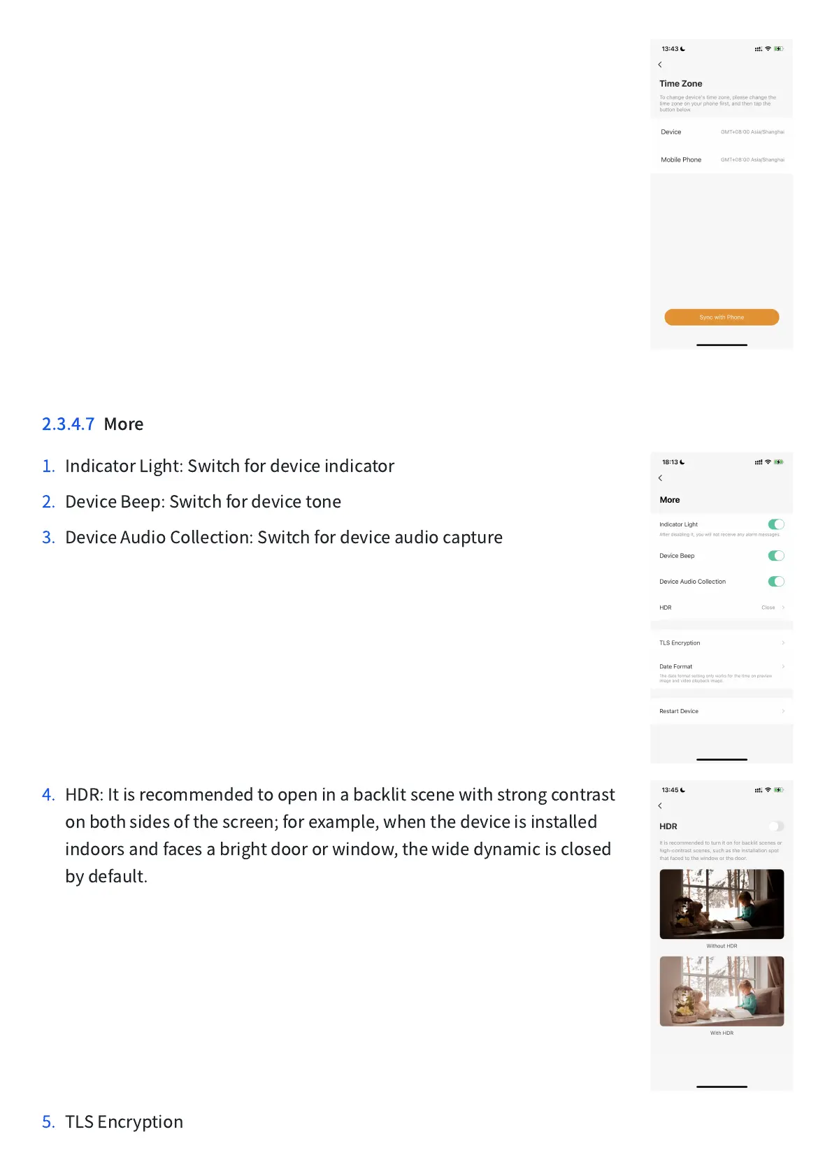 IMOU Cell Go - Device Settings - More Options; More Settings; HDR Settings