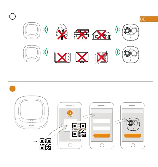 Um die bestmögliche Funkübertragung zu gewährleisten, stellen Sie sicher, dass zwischen Kamera und Hub keine
