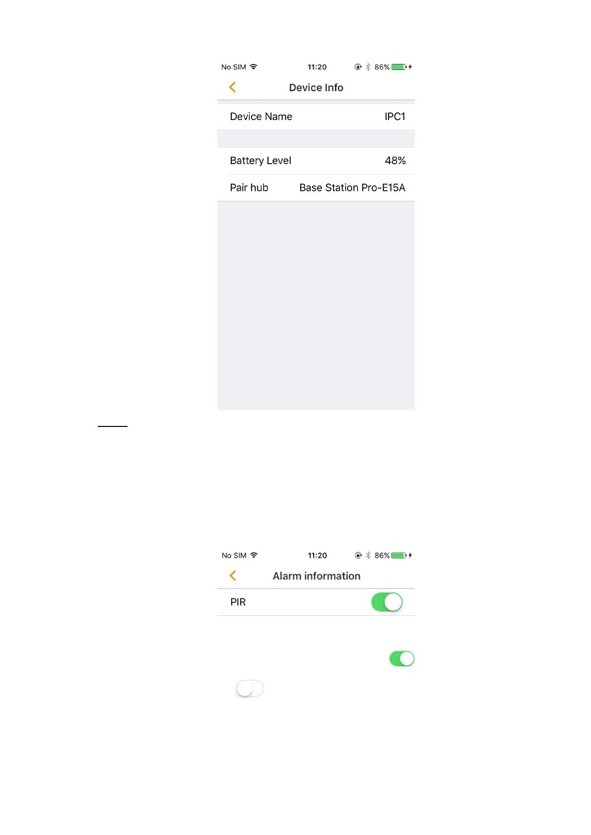 The PIR detection is enabled by default, and the switch shows . Tap the switch to disable