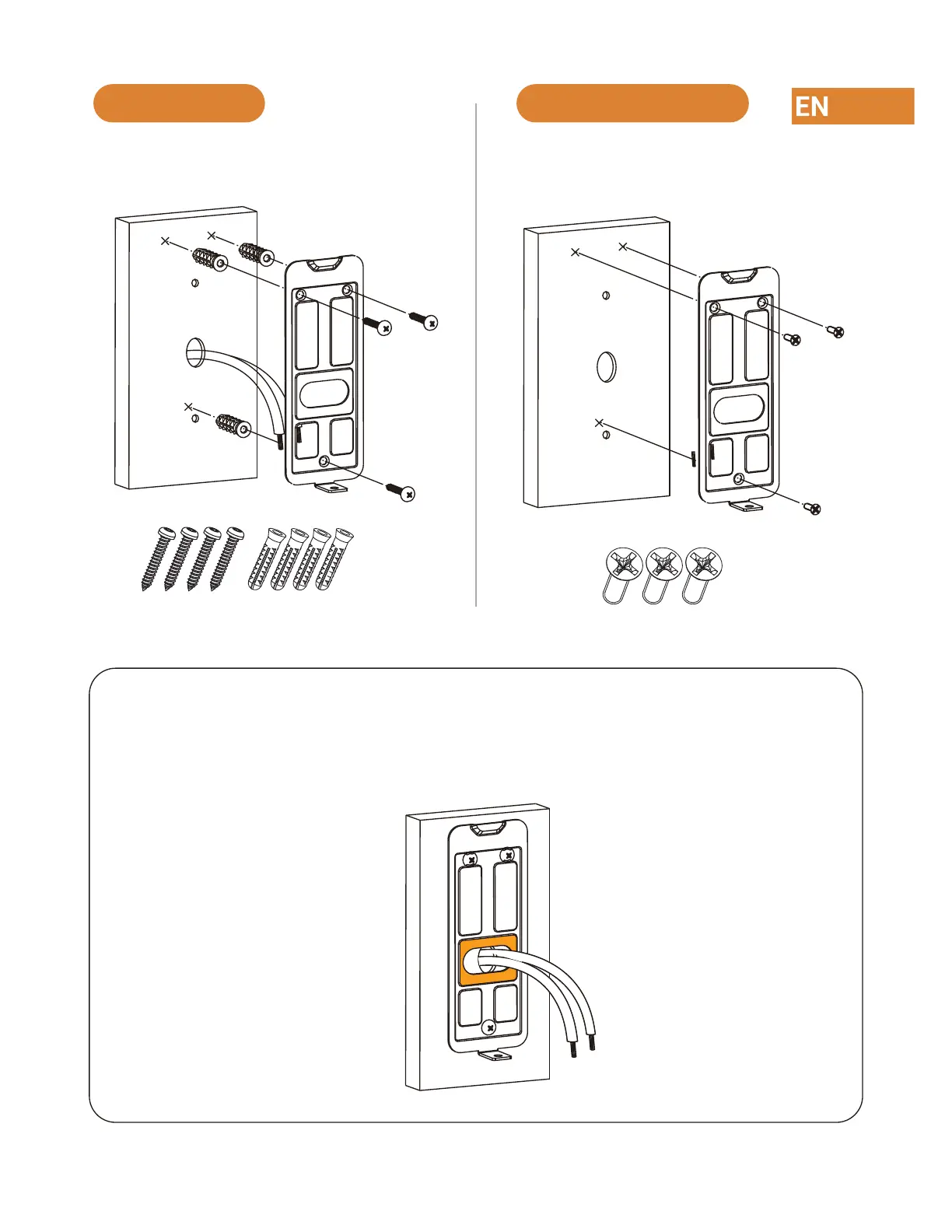 For both installations, ensure the power cables from the wall t