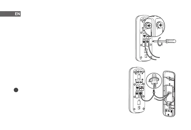 1. Loosen the power port screws of the doorbell.