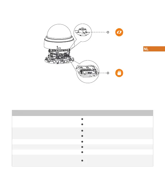 Het patroon van led-indicatoren wordt weergegeven in de volgende tabel.