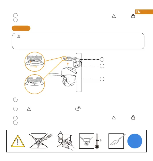 Rotate the camera counterclockwise until it is locked. Make sure align with .