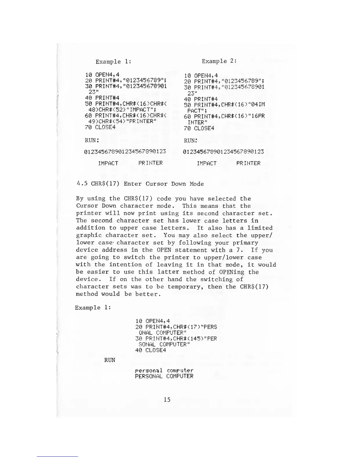 impact printer 24 - 4.5 CHR$(17) Cursor Down Mode