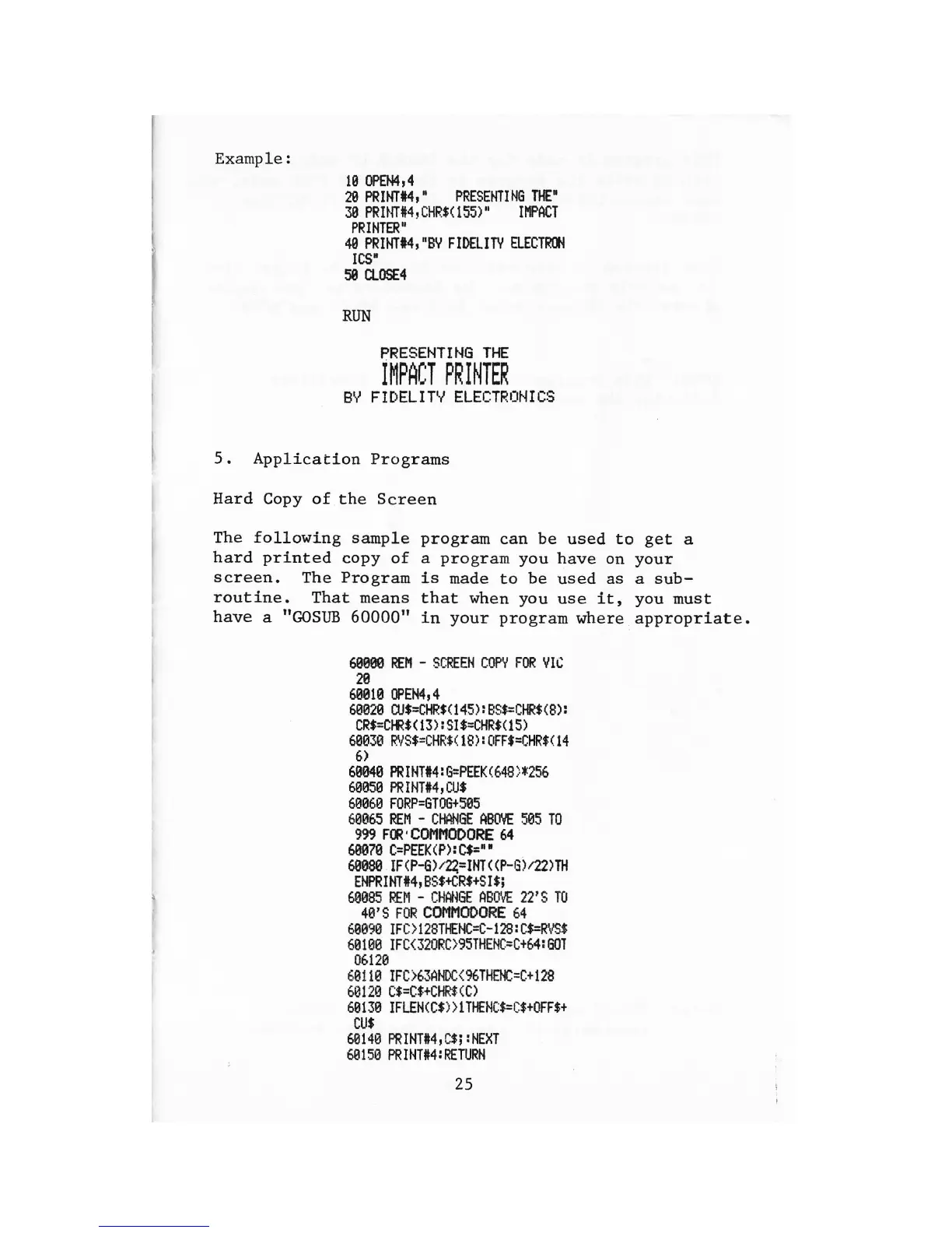 impact printer 24 - Application Programs; Hard Copy of the Screen